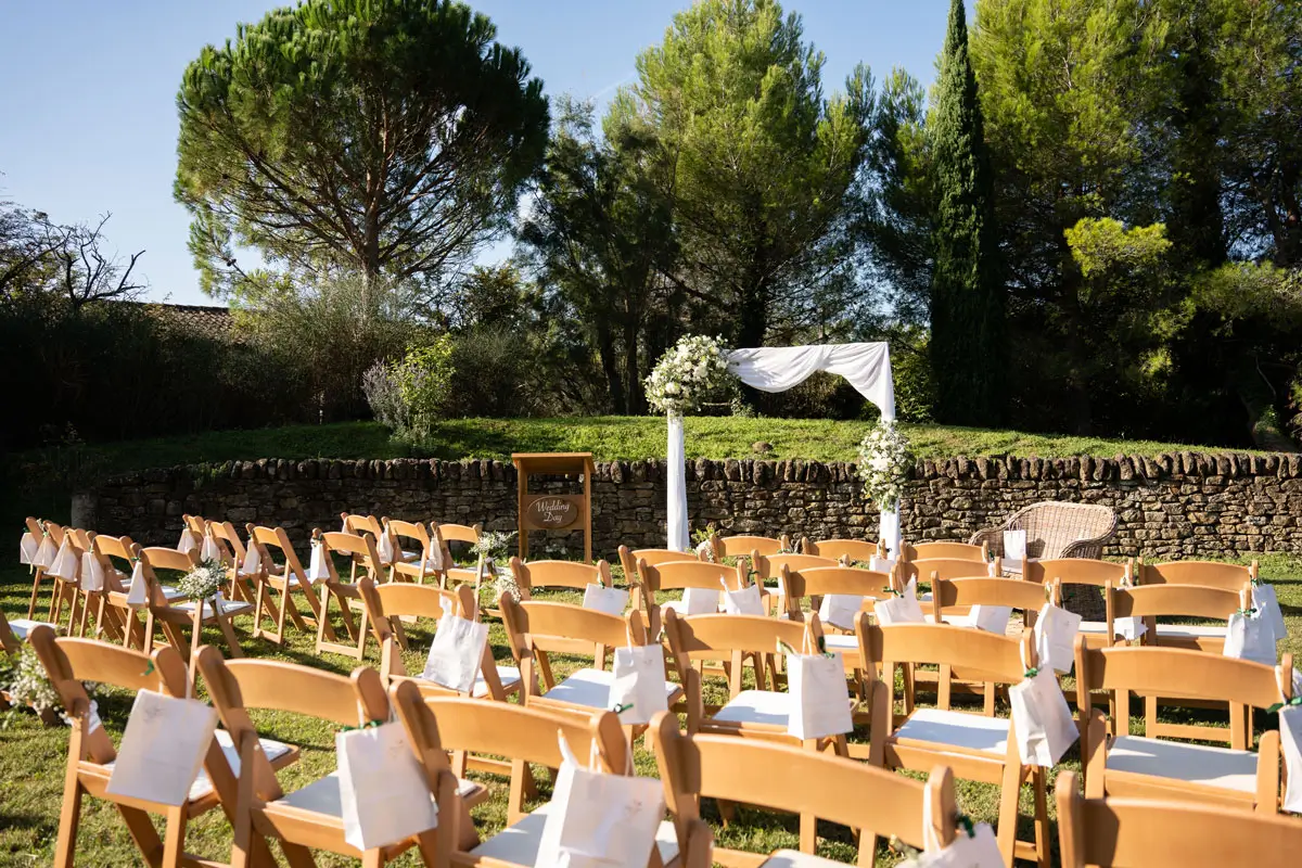 • Une cérémonie en plein air, dans les jardins provençaux bordés de cyprès et d’oliviers